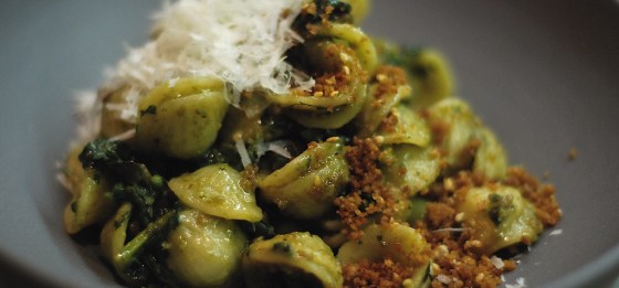 This orecchiette recipe from the January 2013 issue of Bon Appétit came out amazingly well. I adapted some of the proportions to serve two people, and mixed in some additional pecorino.