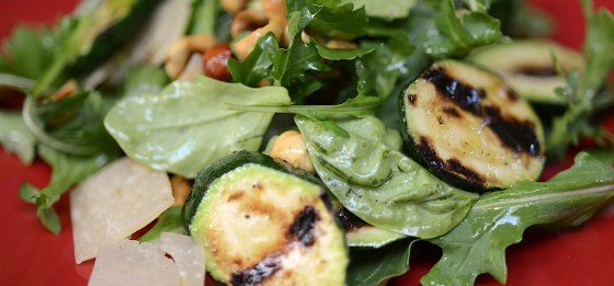 This recipe is from Yotam Ottolenghi’s book Plenty. The combination of grilled zucchini, hazelnuts and Parmesan is really lovely. I don’t have purple basil in my herb garden, so I simply substituted with some mixed green lettuce.
